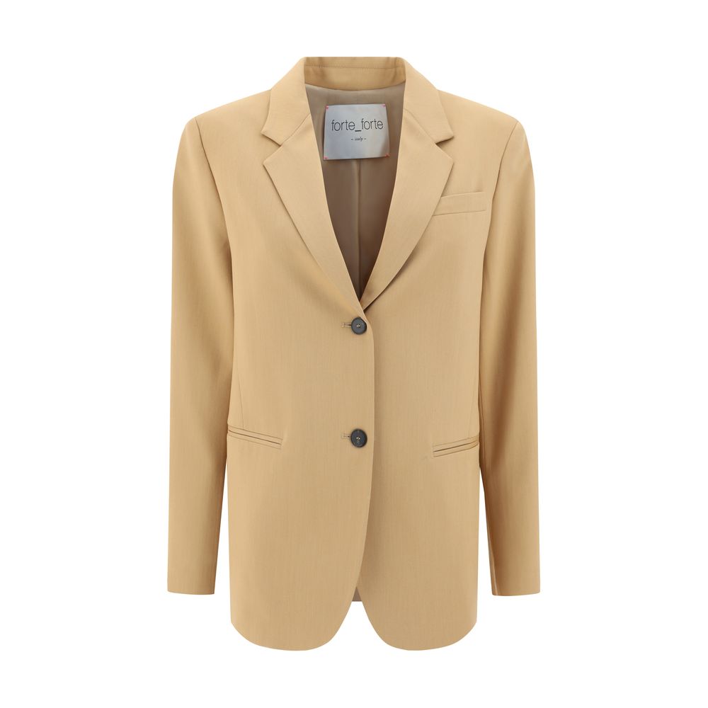 Blazer Jacket by Forte_Forte, contrasting button front closure, classic lapels, two side welt pockets, one front welt pocket, back vent, structured shoulders, regular fit.