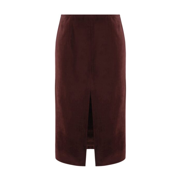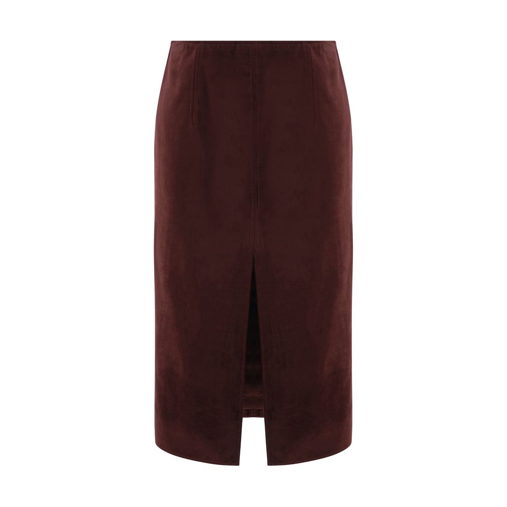 Cotton Skirt by Forte_Forte, sheath model, velvet design, concealed back panel zipper closure, deep front slit, regular fit.