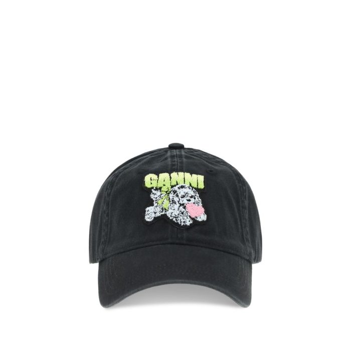 Ganni WASHED COTTON CANVAS PUPPY CAP