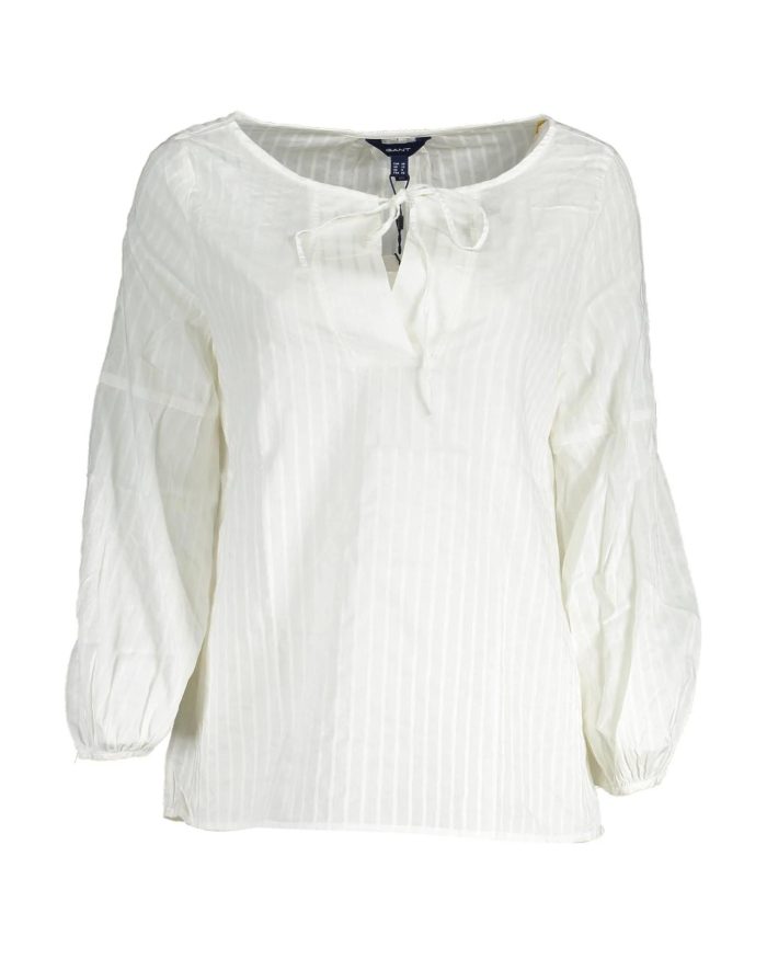 Elegant Gant long sleeve sweater with V-neck Delicate lace detailing and Gant logo Made from high-quality cotton Classic white color Made in India 69% Cotton 31% Lyocell