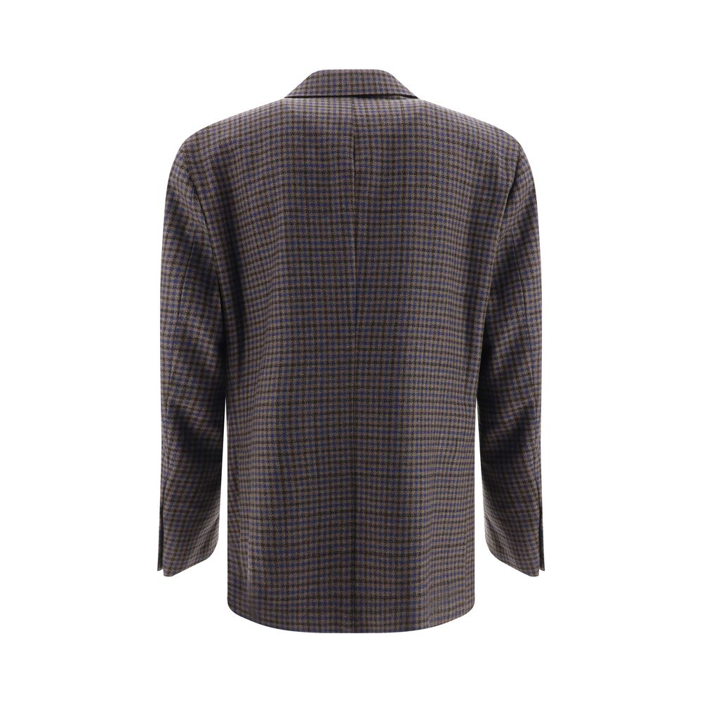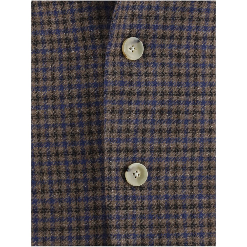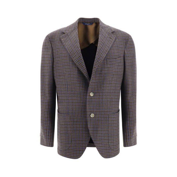 Virgin Wool Blazer Jacket by Gi Capri, contrasting front button closure, classic lapels, two front patch welt pockets, one front welt pocket, two back slits, structured shoulders, check pattern, regular fit.