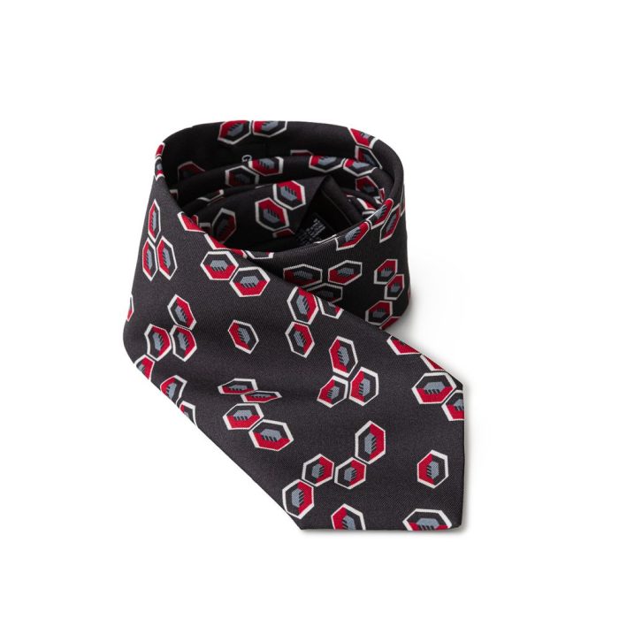 Giorgio Armani Anthracite Silk Tie with Contrasting Multicolor Symmetrical Geometries