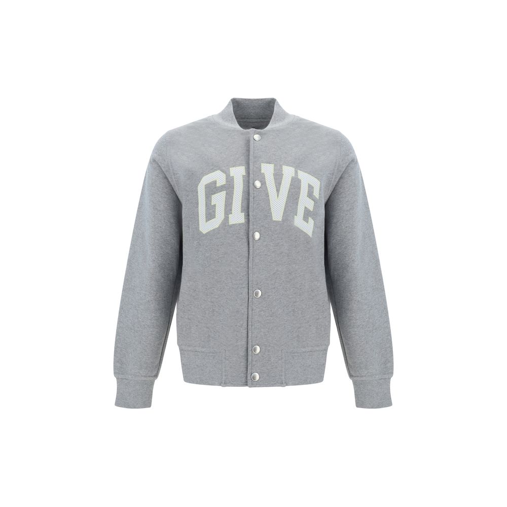 Cotton Sweatshirt by Givenchy, bomber jacket style, ribbed crew neck, ribbed cuffs, ribbed hem, front snap button closure, two side welt pockets, iconic brand monogram embroidered in contrasting front and back, plush interior, monochrome pattern, regular fit.