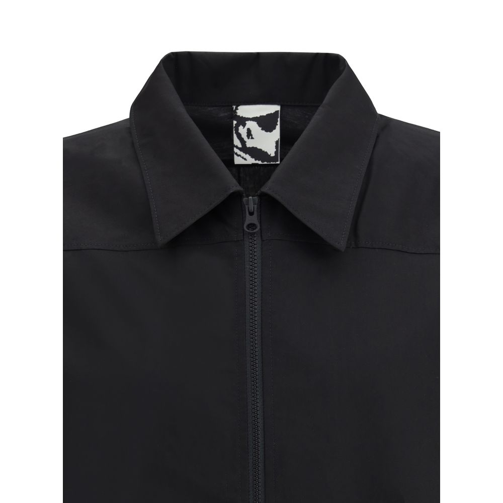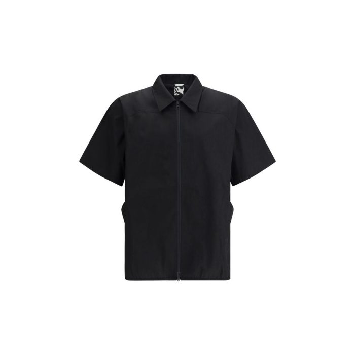 Cotton Shirt by GR10K, short-sleeved design with a classic collar for a smart casual look. It features two welt pockets on the front for a practical and functional touch, while the double-slider zipper closure on the front adds a modern detail. The iconic monogram embroidered on the front completes the design, giving it a distinctive and recognizable brand touch