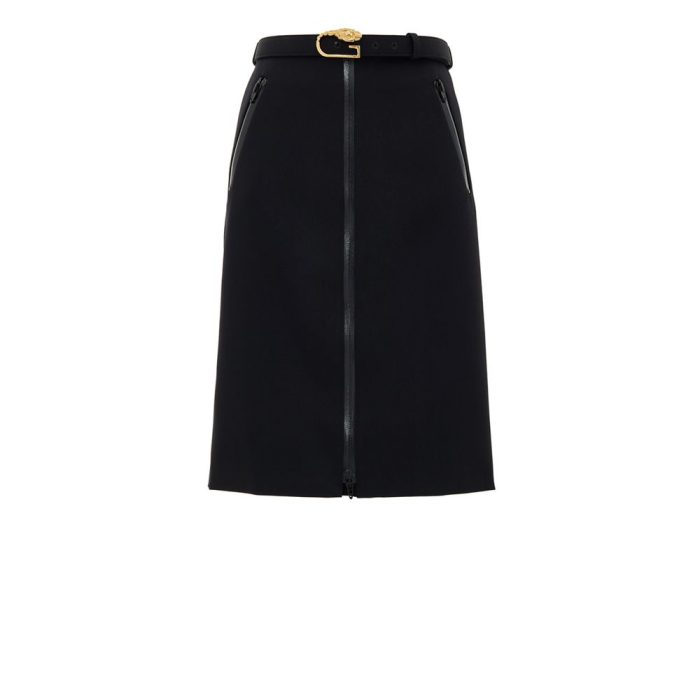 Black Skirt with Zip and Gucci Belt.