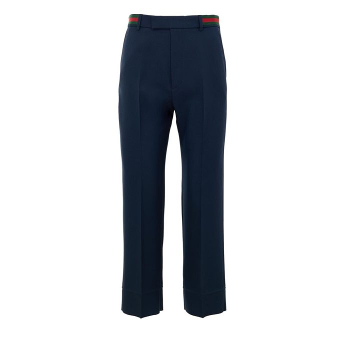 Blue Tailored Trousers with Gucci Web Tape Detail.