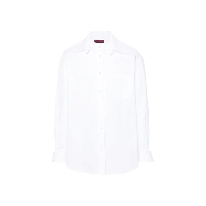– Composition: 100% Cotton – Long sleeves – Front button closure – Machine wash (delicate) – Double classic and Korean collar – Double cuffs with button – Patch pocket on the chest – Detail with embossed Gucci logo – Rounded hem – Made in Italy – Gender: MEN –