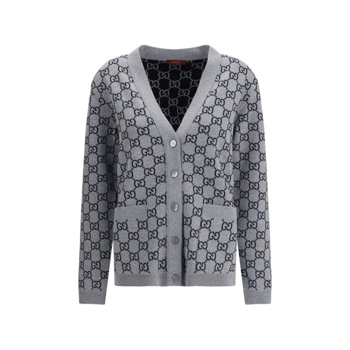 Gucci’s GG Supreme reversible Cardigan is made of fine wool tubular jacquard in shades of black and white with the iconic GG pattern. Featuring a V-neckline, low shoulders and long sleeves, it has two front pockets and ribbed trim. A versatile and sophisticated garment perfect for completing smart or casual looks with a distinctive touch.