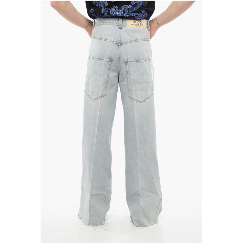Gucci Light Wash Wide Leg Denims with Fringed Bottom 34cm