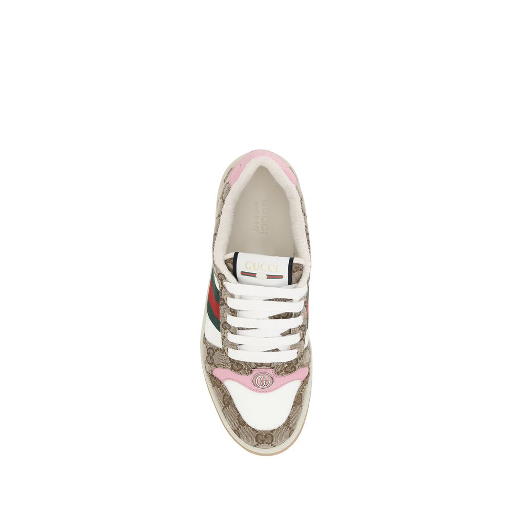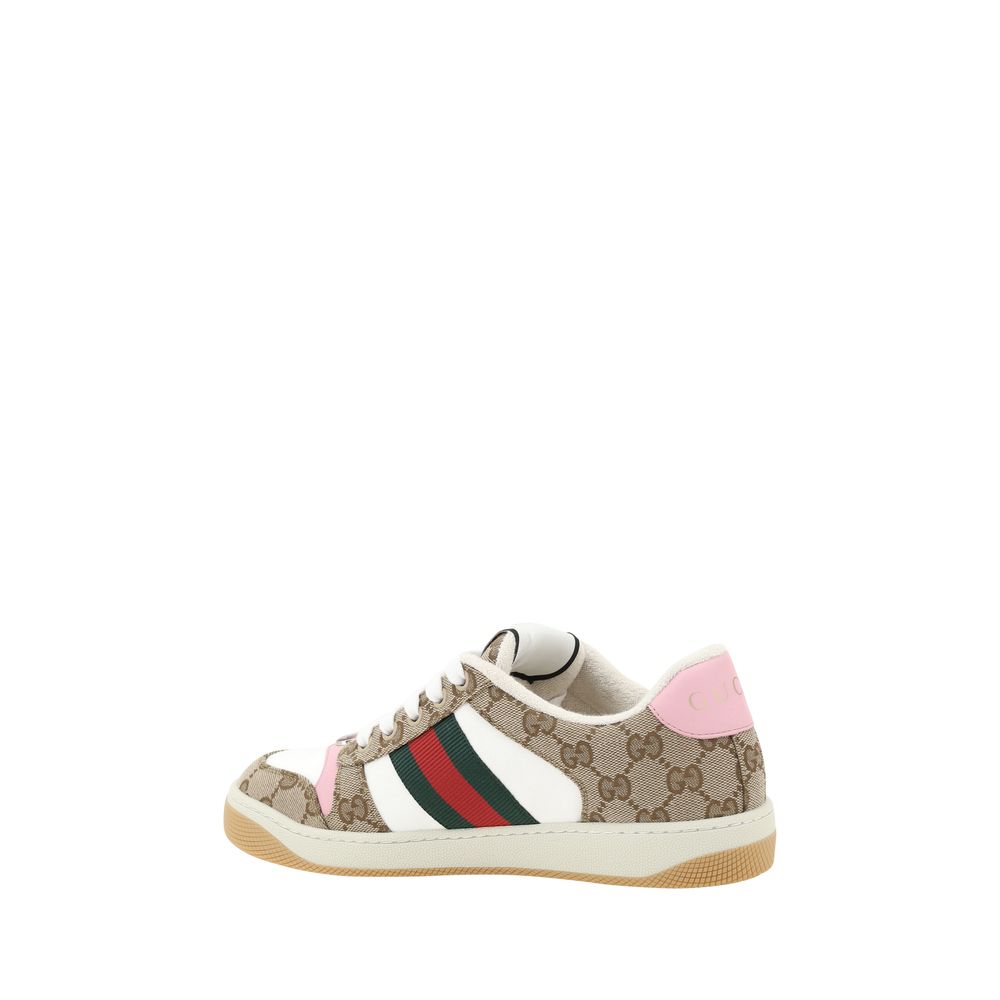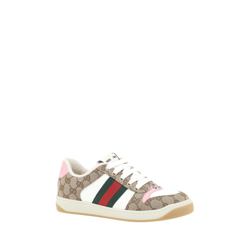 Gucci’s Screener Sneakers are a perfect expression of contemporary style and distinctive luxury. With a lace-up front closure, these sneakers offer a secure and customizable fit. The brand’s iconic signature applied in contrast on the front tab and all-over repeated monogram give an instantly recognizable look. The iconic brand monogram plaque applied on the front adds an additional prestige detail, while the brand’s distinctive colors on the side panels enhance the design with a vibrant touch. The contrasting leather patch on the heel completes the aesthetic.