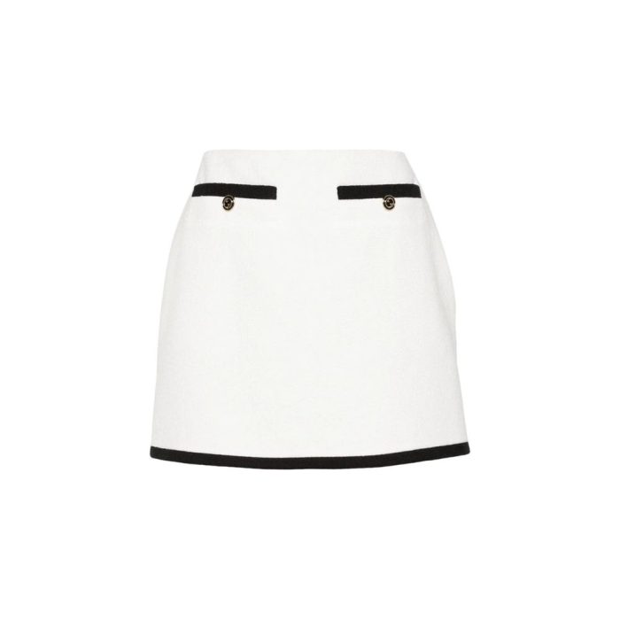 – Composition: 91% Cotton 9% Polyamide – Lining: Viscose – Hand wash – Zipper closure – Low waist – Pocket lining: 100% Cupro – Chalk-colored cotton tweed – Black finishes – Enamel buttons with round GG cross – Two front pockets with buttons – Made in Italy – Gender: WOMEN –
