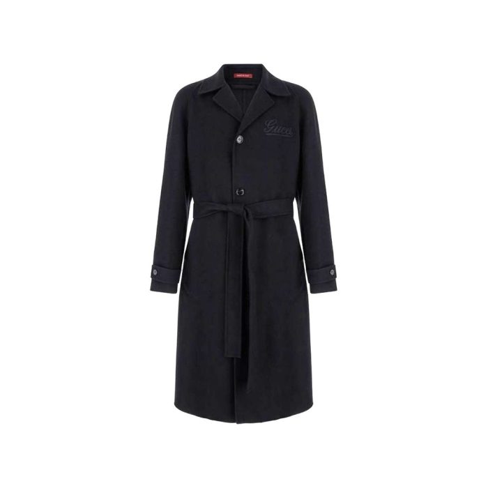 – Composition: 100% Wool – Long sleeves – Front button closure – Two side pockets – Detachable matching belt – Specialist wash – Raglan sleeves – Storm flap – Chest embroidered gucci lettering – Cuffs adjustable buttoned tabs – Made in Italy – Gender: MEN –