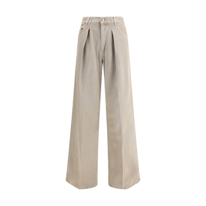 Cotton baggy Jeans by Haikure feature five pockets, wide legs and a front button and zipper closure. They feature belt loops at the waist and are finished with an appliquéd logo leather patch on the back for a unique and refined style touch.