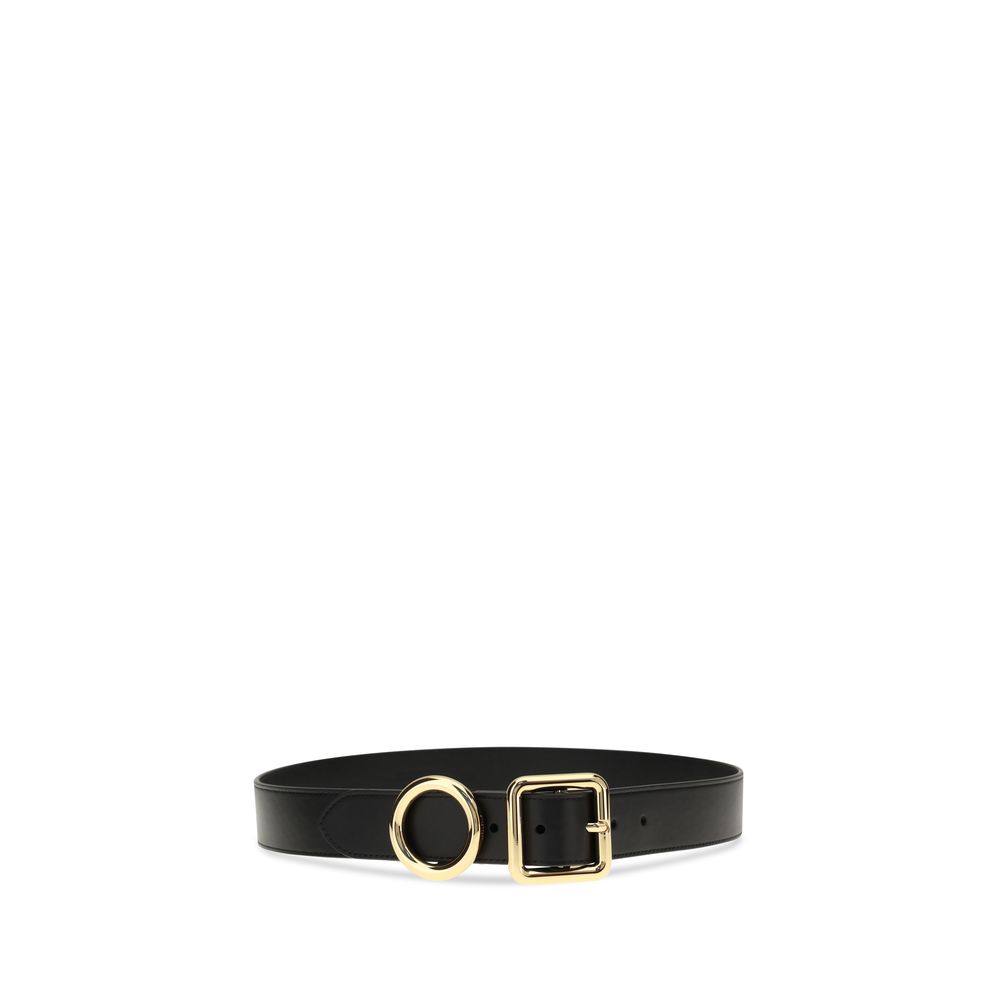 The leather Regalo Belt by Jacquemus combines elegance and contemporary design. Made of leather, it is enhanced by circular and square gold metal rings, decorative perforations and stitching, and the engraved logo, which gives the model a distinctive and refined touch.