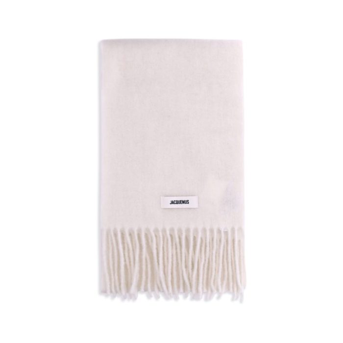 The Jacquemus fringed Scarf is a long accessory crafted from soft mohair-alpaca. The grosgrain embroidered logo detail adds a refined touch to a warm and enveloping design.