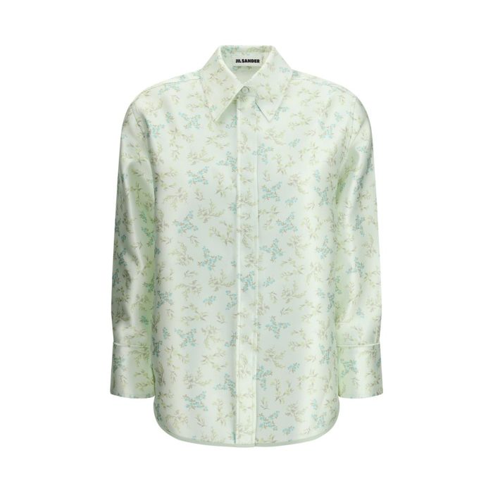 The floral-print Shirt by Jil Sander combines minimalist elegance with refined graphic detail. Crafted in a soft light green hue, it features an all-over floral print that adds fluidity and lightness to the design. A pointed collar, button-down closure, and long sleeves complete the look with understated sophistication, true to the brand’s signature aesthetic.