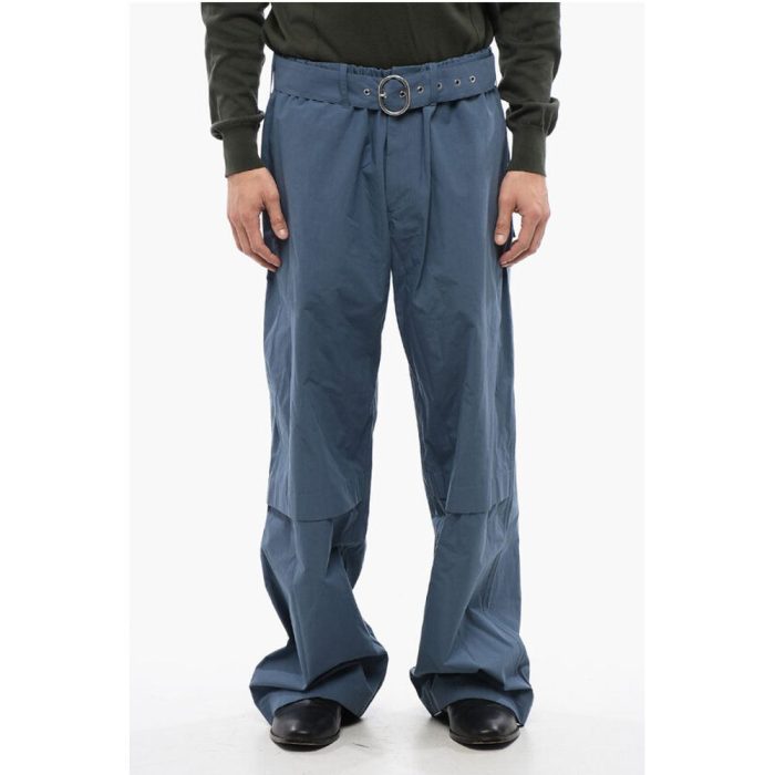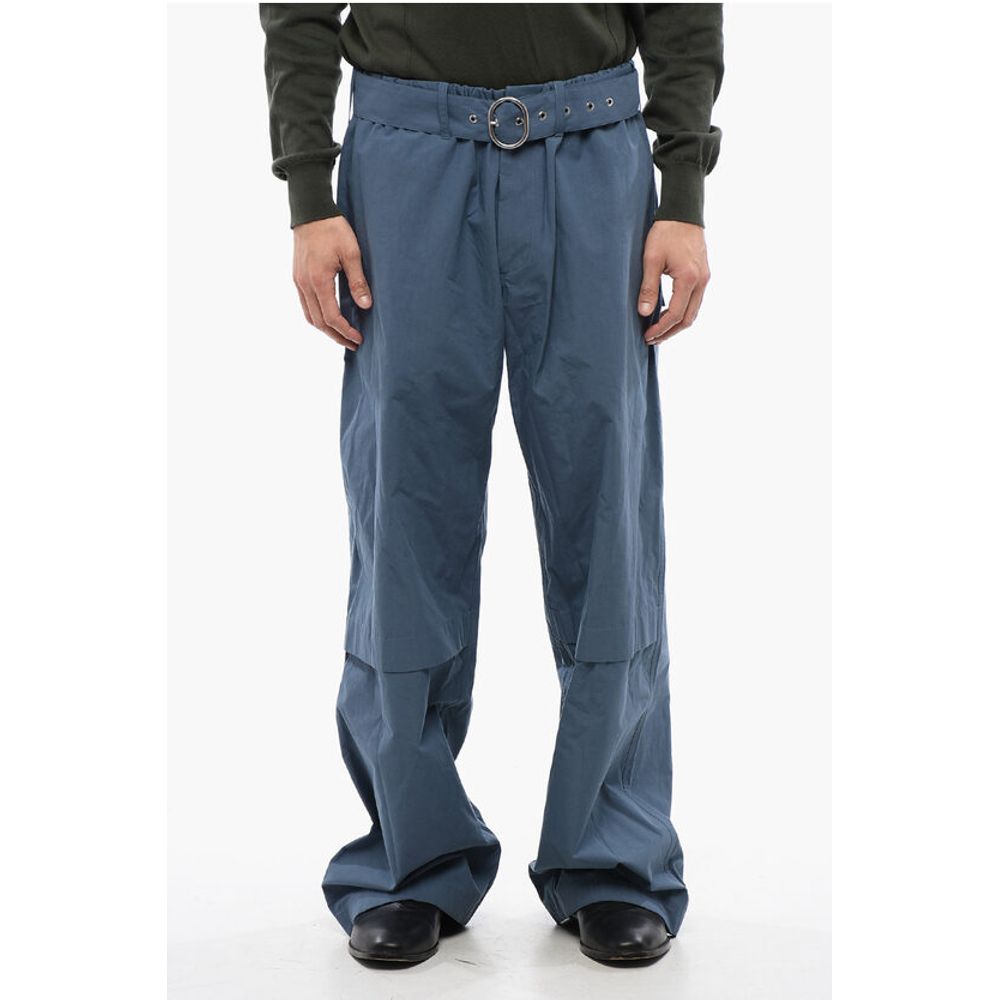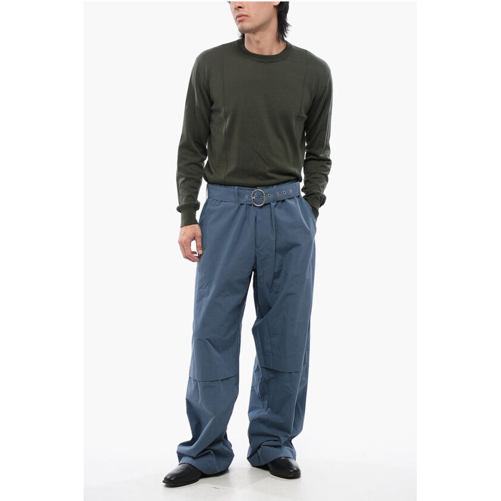Jil Sander Cotton Wide Leg Pants with Fabric Belt