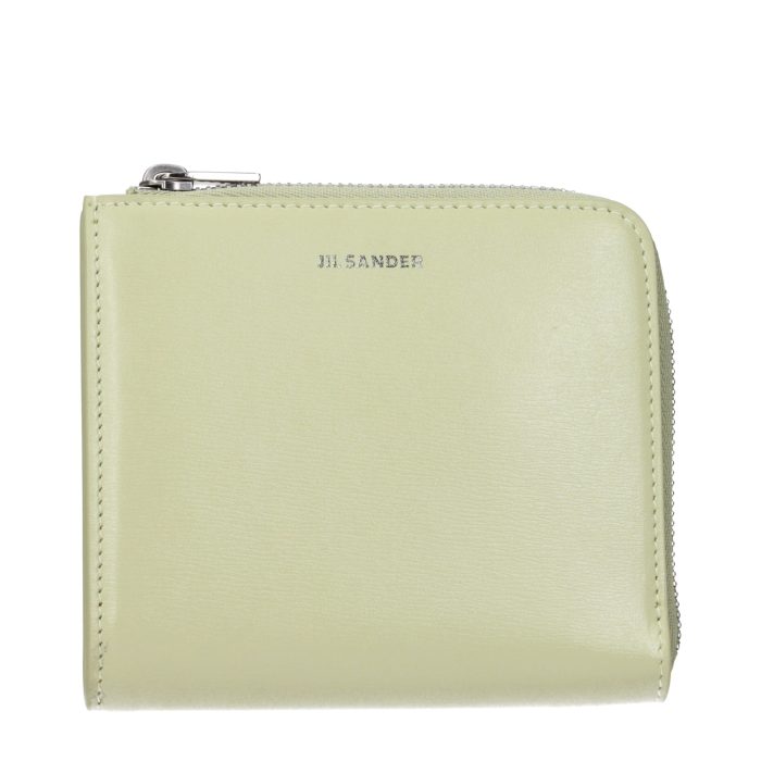 The product with MPN J25UI0004P6487338 and code F84993 leather in green is a wallets designed by Jil Sander. It has features like front logo.