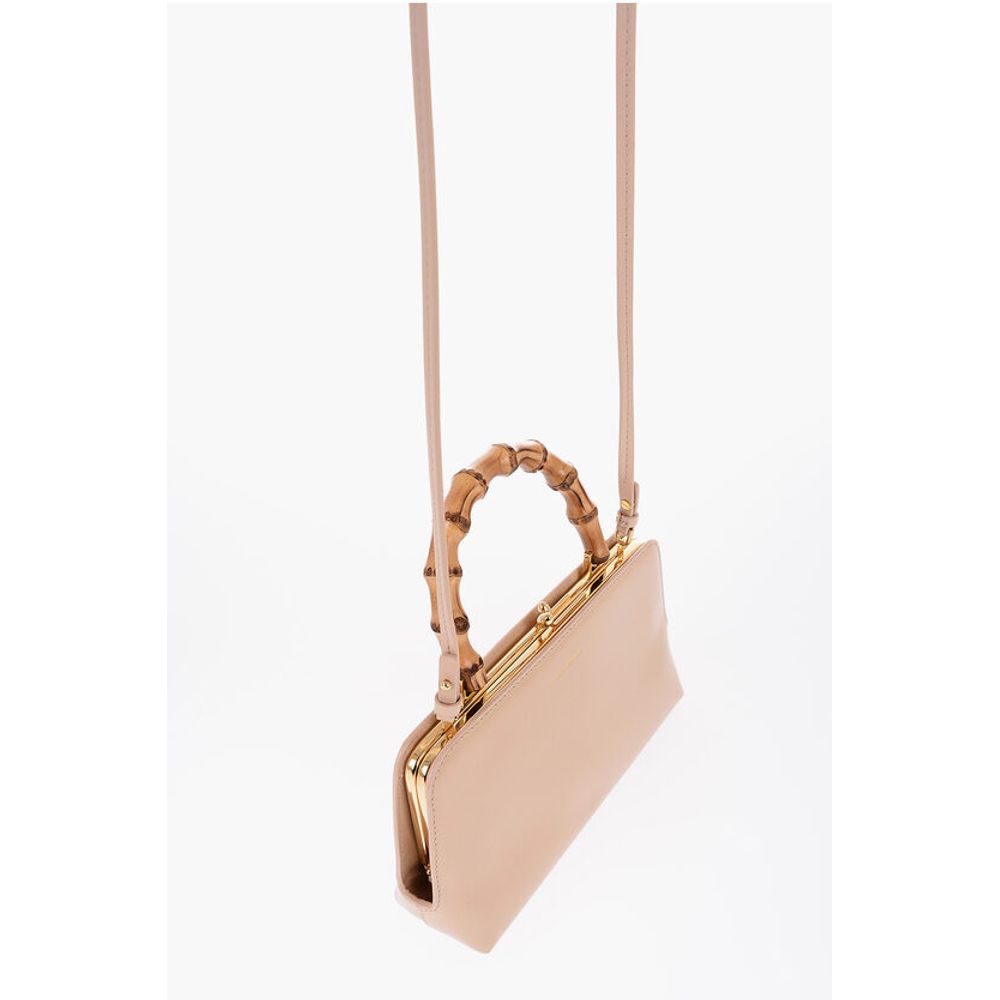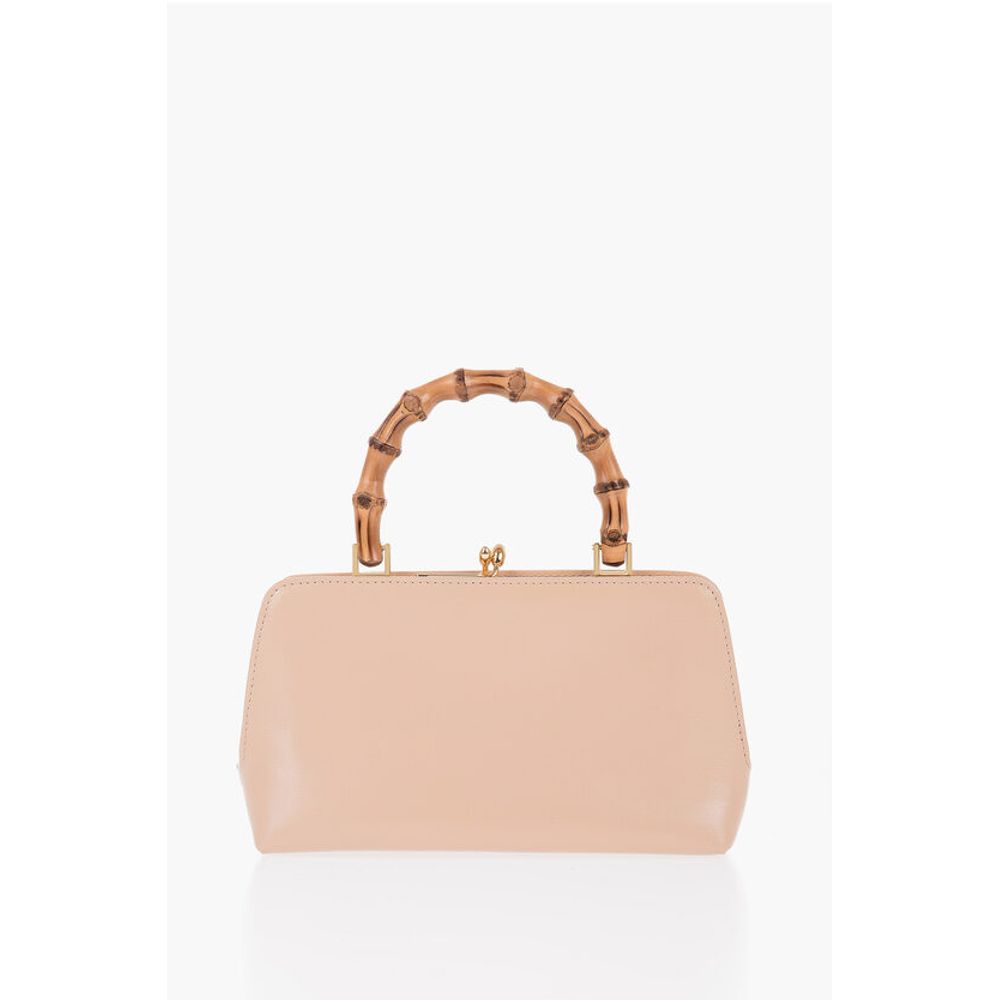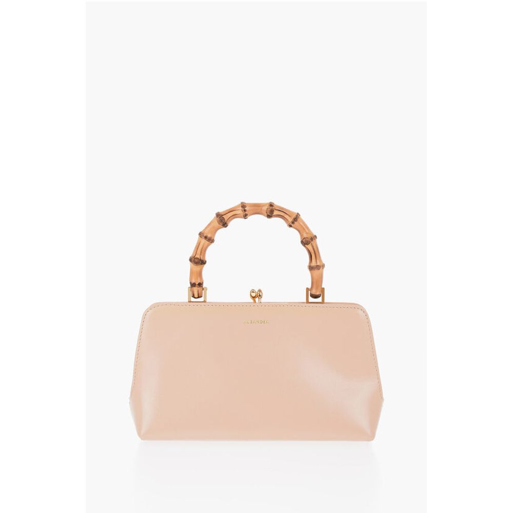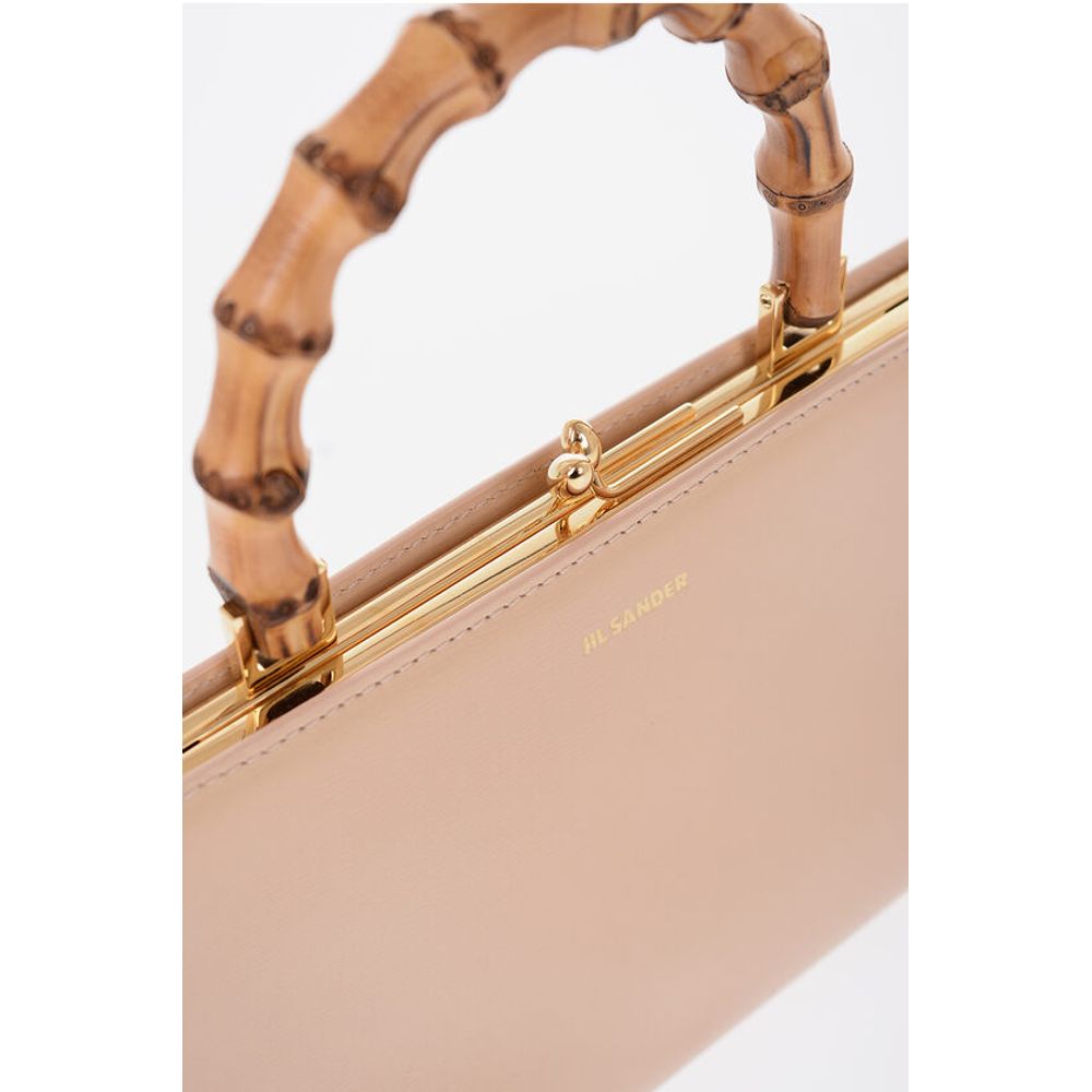 Jil Sander Bamboo Handle Leather Handbag with Clip Clap Closure