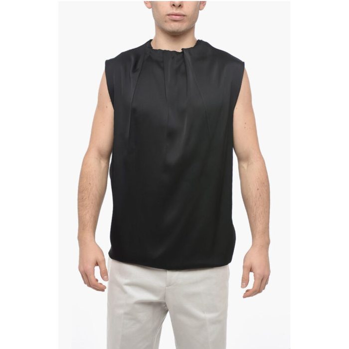 Jil Sander Silk Blend Tank Top with Pleated Neck