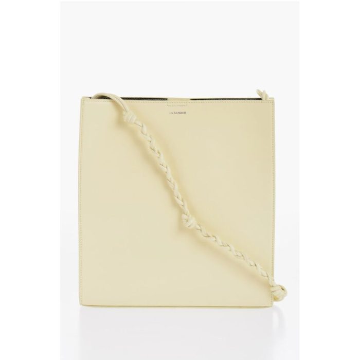 Jil Sander Leather Slim TANGLE Shoulder Bag with Woven Shoulder Strap