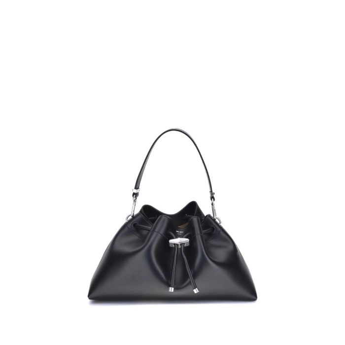 Jimmy Choo’s Cinch Shoulder Bag is an evolution of the iconic Bon Bon model-inspired by contrasts and defined by a soft silhouette cinched by a drawstring closure with faceted Diamond detail. Crafted from polished calfskin, it features silver metal hardware, a leather-lined interior with a zippered pocket, and an adjustable, removable shoulder strap for versatile wearability.