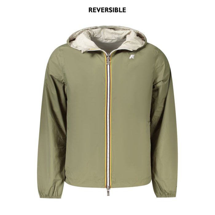 LONG-SLEEVED JACKET WITH WATERPROOF HOOD, REVERSIBLE GREEN/BEIGE, 2 EXTERNAL POCKETS, 2 INTERNAL POCKETS, CONTRASTING DETAILS, ZIP, LOGO, 100% RECYCLED NYLON