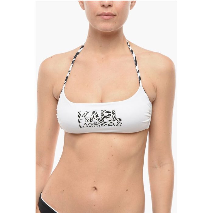Karl Lagerfeld Animal Printed Logo Halter Bikini Top