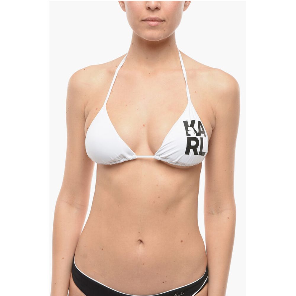 Karl Lagerfeld Logo Printed Triangle Bikini Top