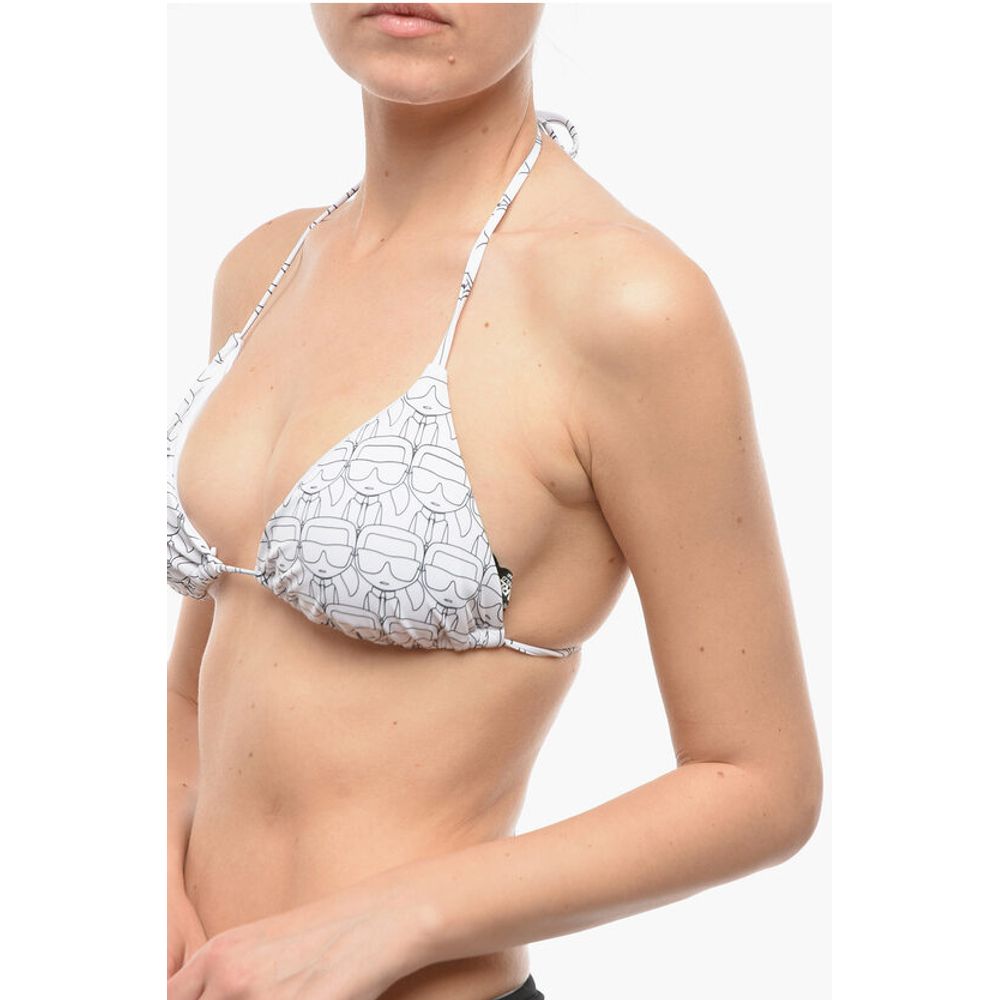 Karl Lagerfeld Triangle Bikini Top with All-Over Iconic Print