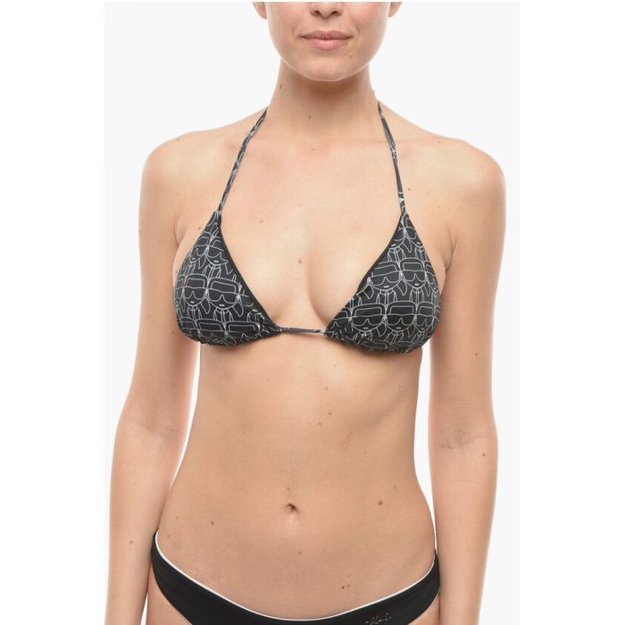 Karl Lagerfeld Triangle Bikini Top with All-Over Iconic Print