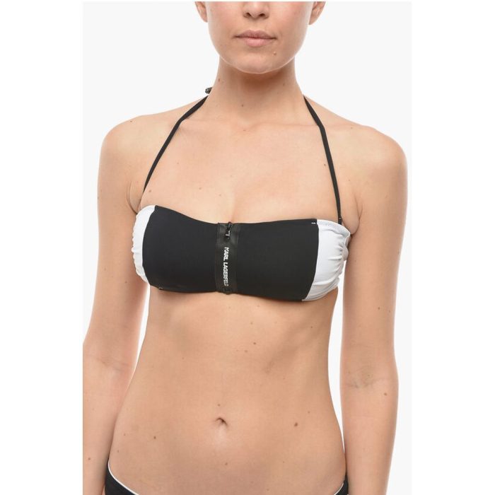 Karl Lagerfeld Two-Tone Bikini Top with Zip Closure