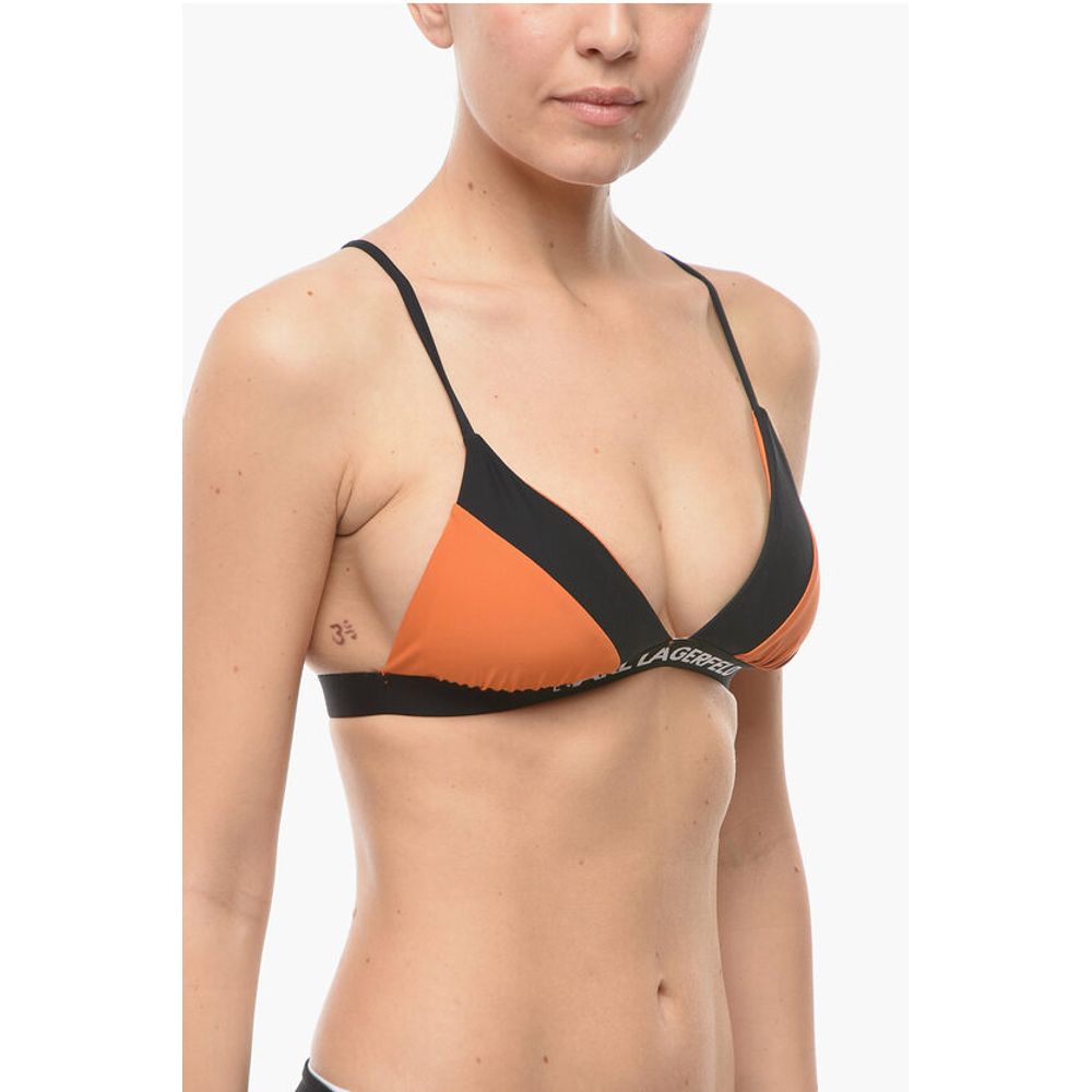 Karl Lagerfeld Two-Tone Triangle Bikini Top With Crossed on the Back