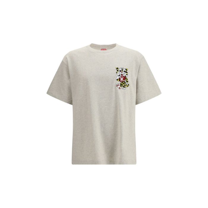 The oversized cotton T-shirt by Kenzo is crafted from dry jersey and showcases the Maison’s new interpretation of its iconic tiger. The Wild Tiger motif embroidered on the chest is rendered using a refined technique that gives depth and character to the design. The oversized fit provides a contemporary, relaxed silhouette, while the seasonal logo is embroidered within the motif for a signature finish.