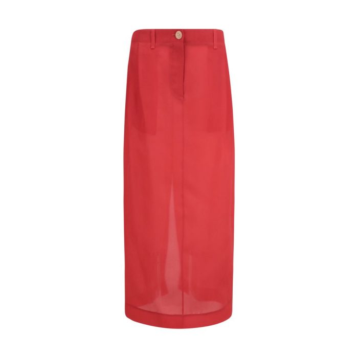 Khaite’s Lucian midi Skirt combines elegance and modernity with its silk organza design that creates a refined semi-sheer effect. Featuring a front zipper and button closure, back slit and belt loops at the waist, it is a sophisticated garment that enhances any silhouette with lightness and character.