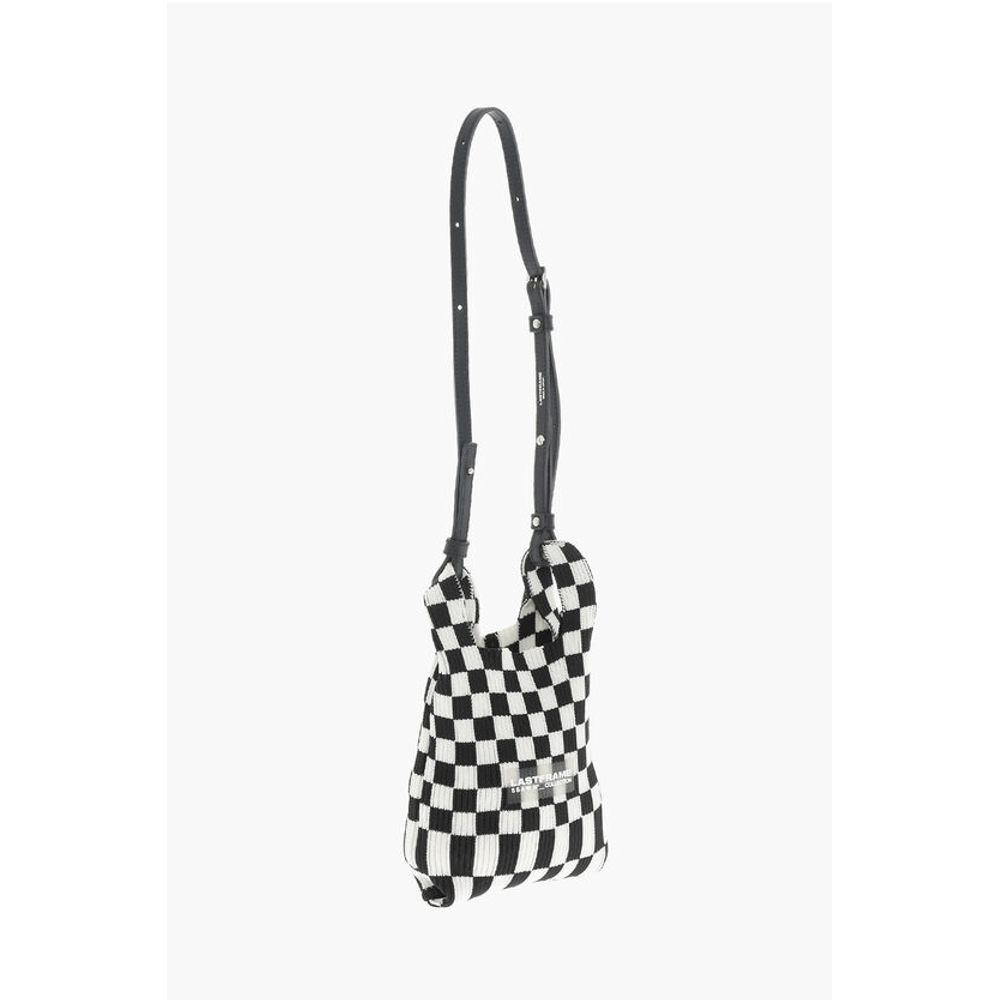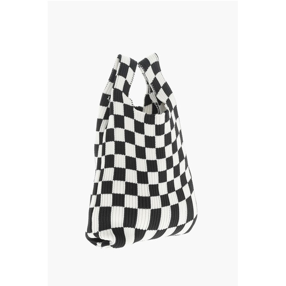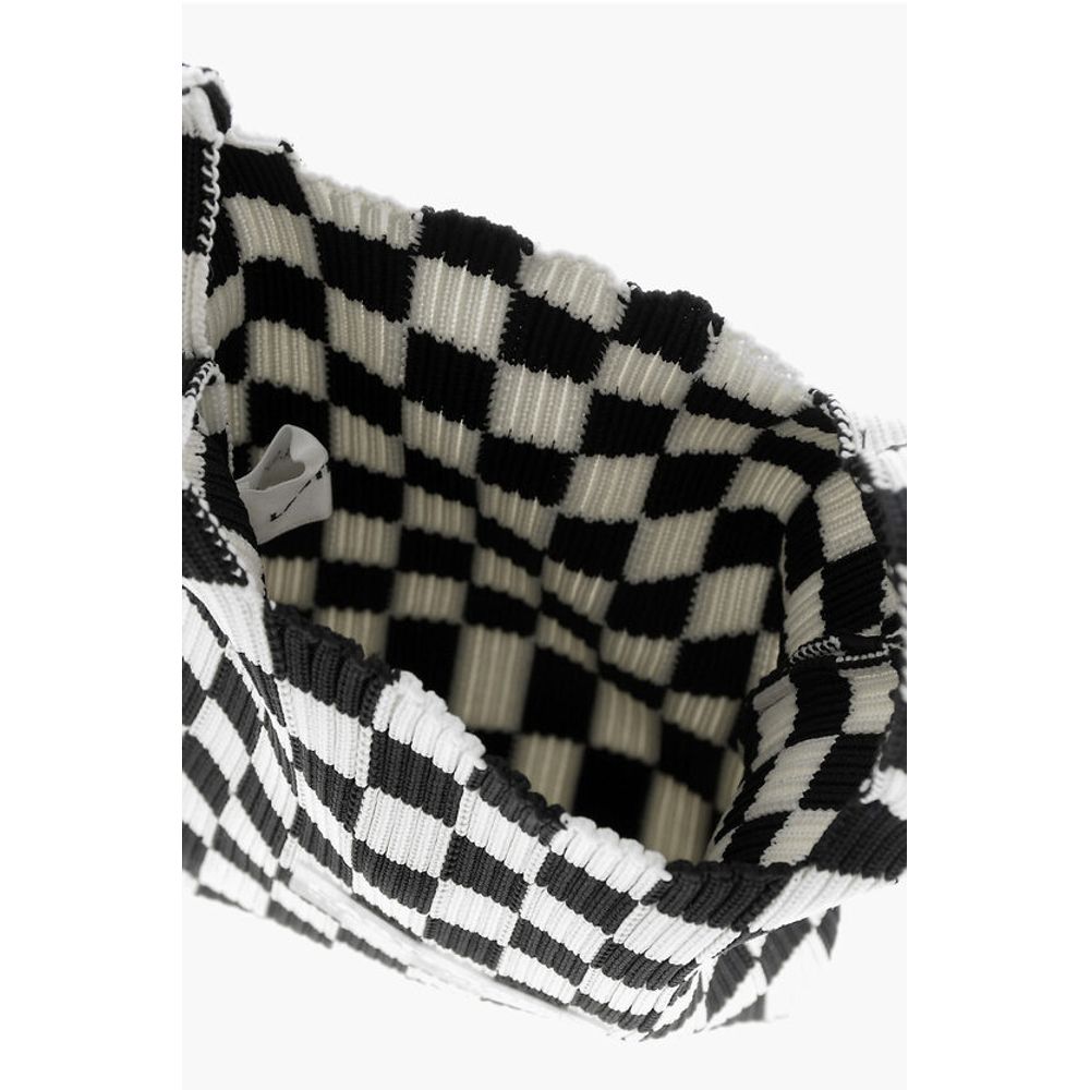 Last Frame Knitted Checked Mini Tote Bag with Faux Leather Shoulder Str