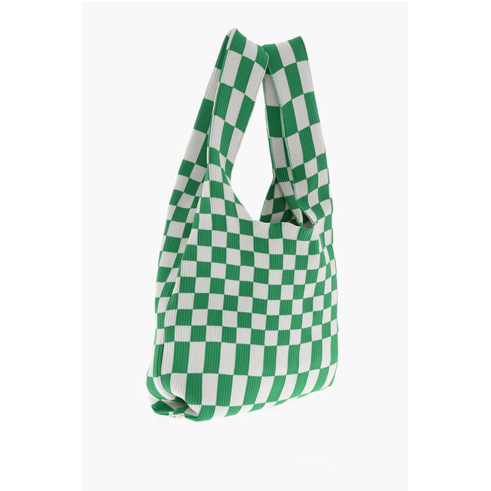 Last Frame Two-Tone Checked Knitted Tote Bag