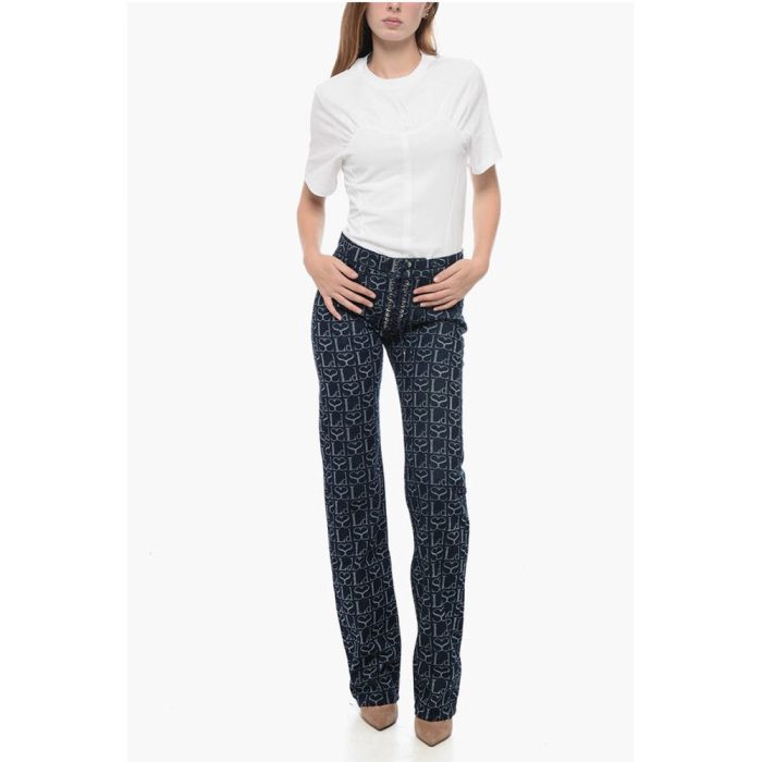Ludovic de Saint Sernin Straight Fit Monogram Denims with Lace-up Detail 23cm