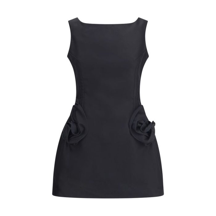 The Short Dress with roses by Magda Butrym is a sleeveless design with a romantic and contemporary appeal. Featuring a square neckline, it has two side pockets embellished with rose details and a back zipper for a practical and discreet closure. An elegant and feminine garment perfect for special occasions.