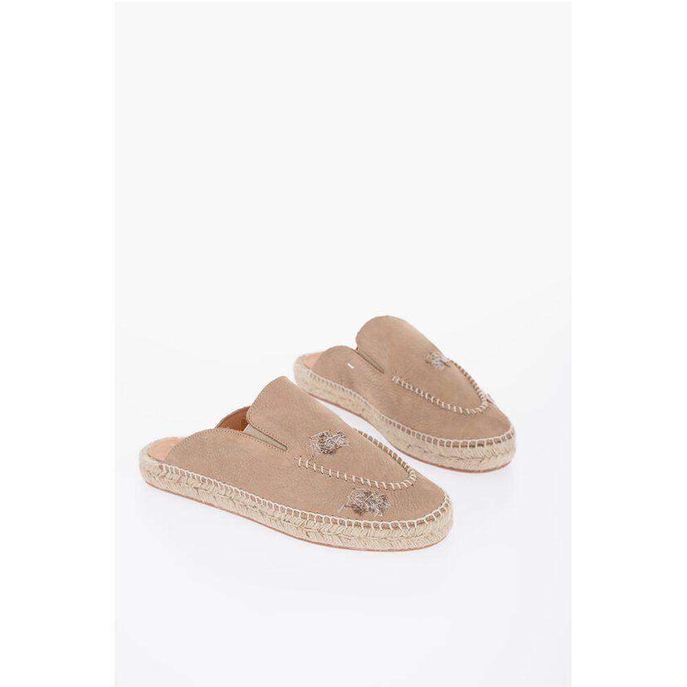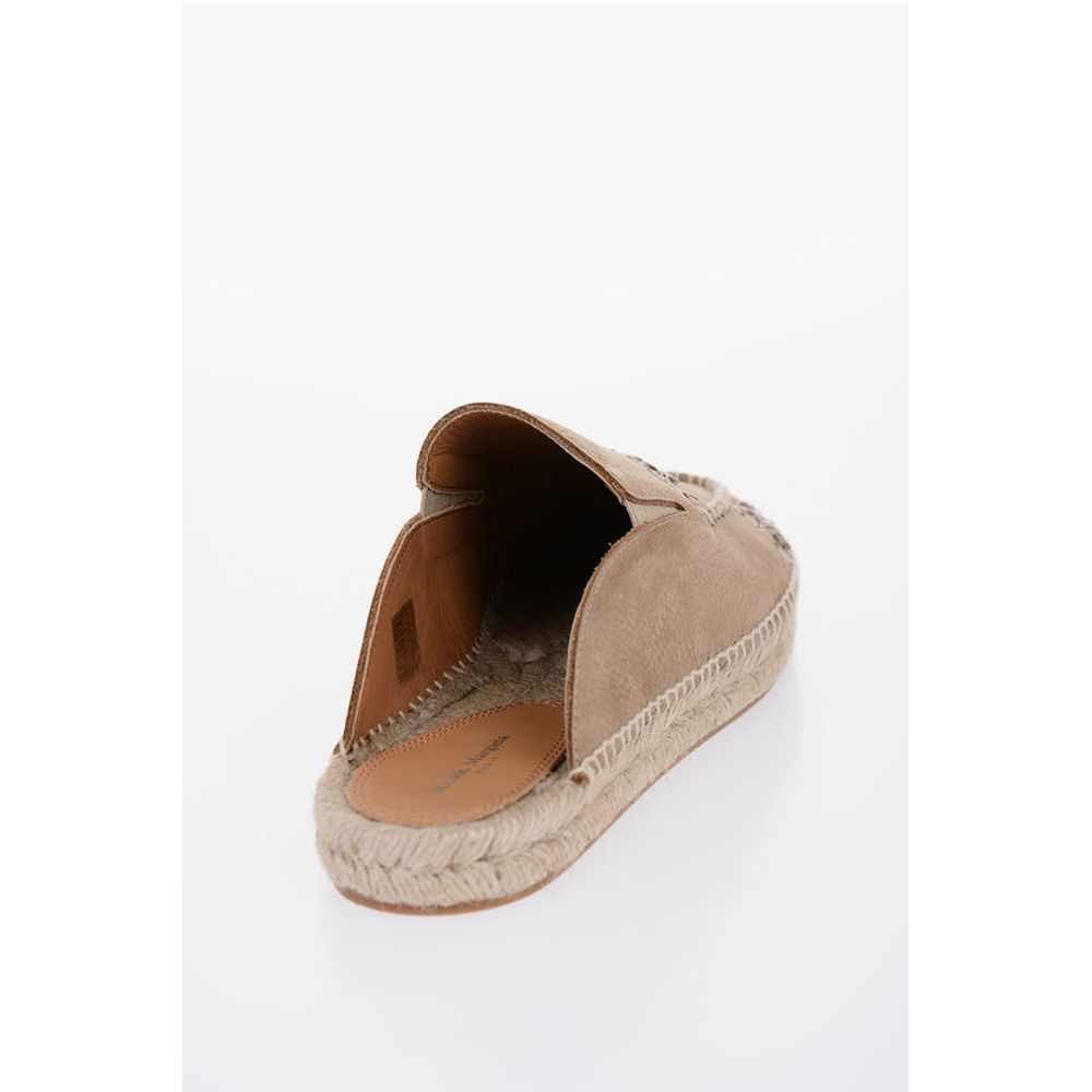 Maison Margiela Leather Slides With Stitching Detail And Espadrillas Soles