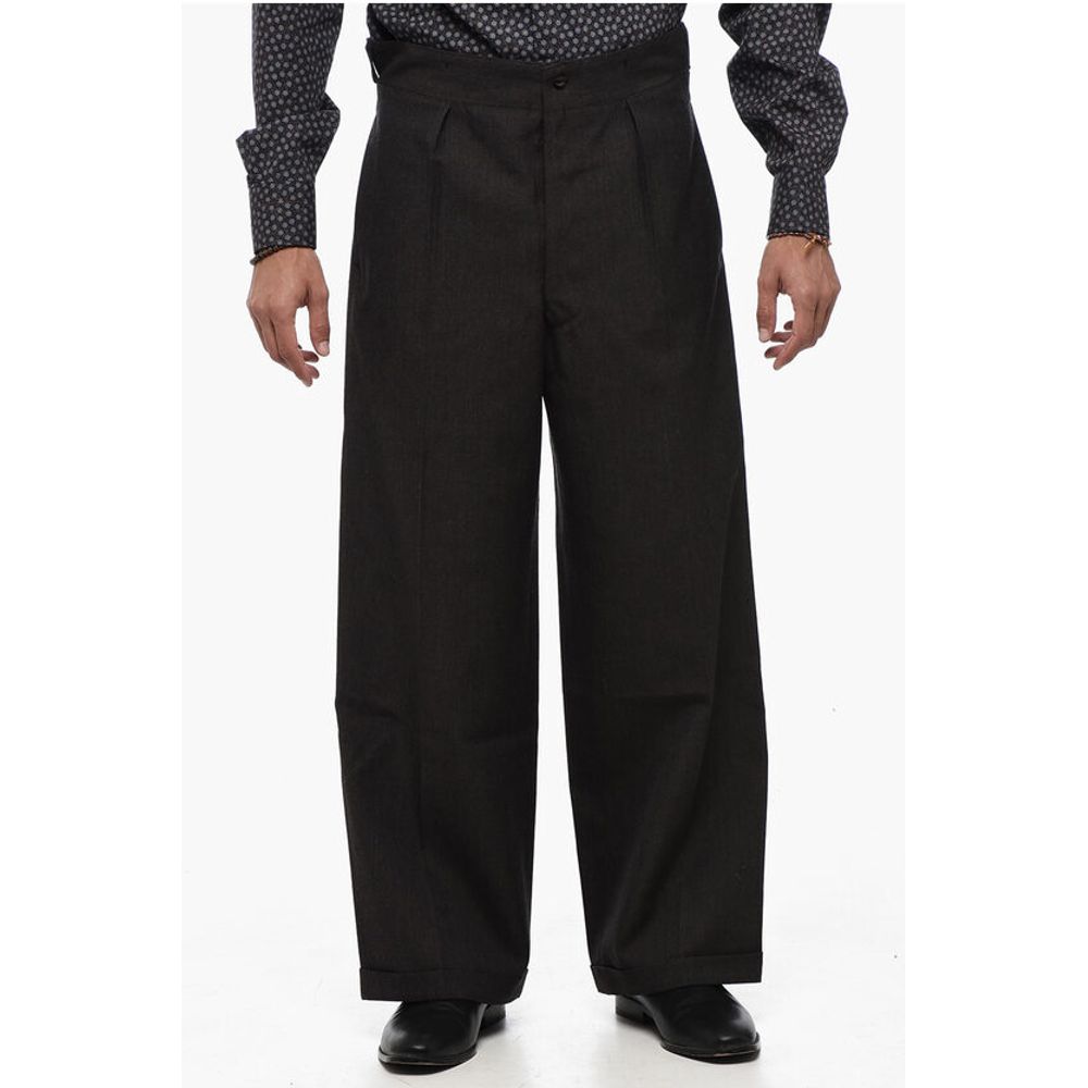 Maison Margiela MM0 Single-pleated Wide Leg Wool Pants