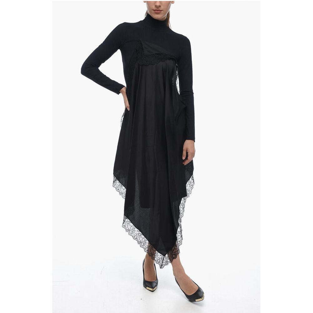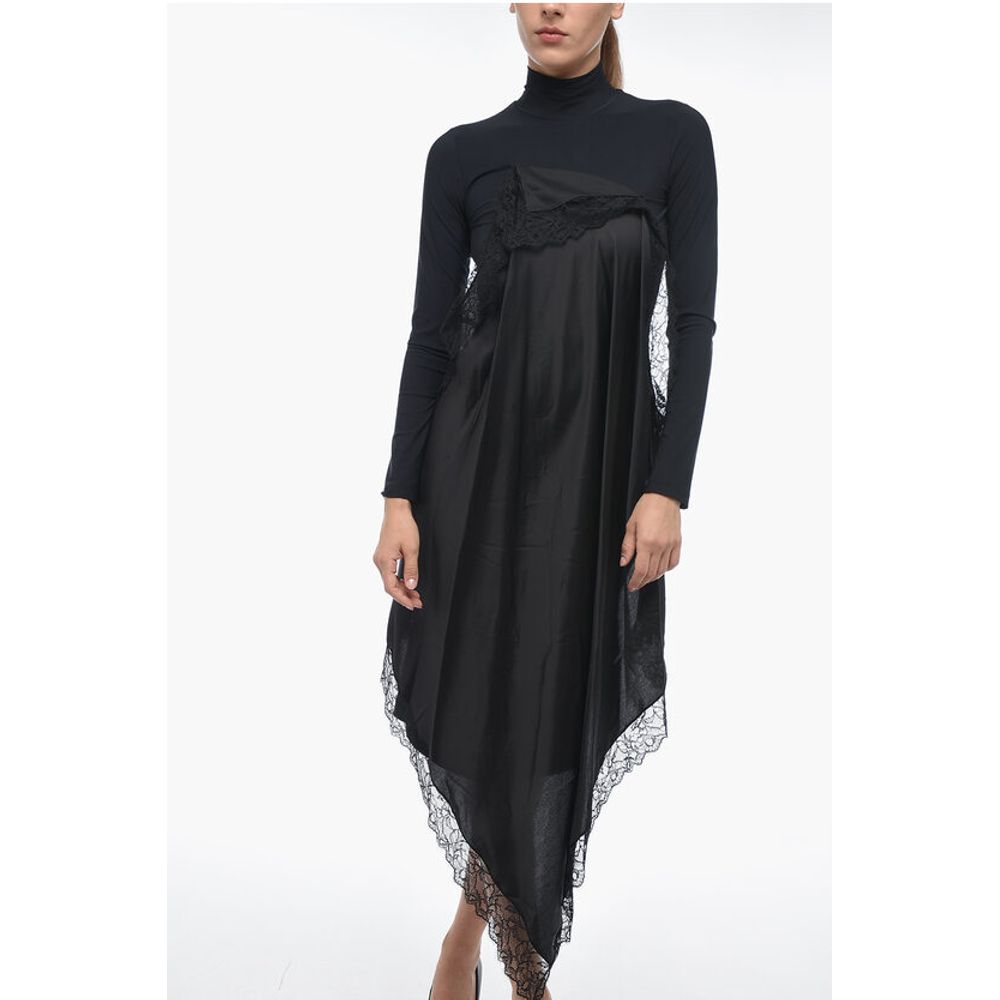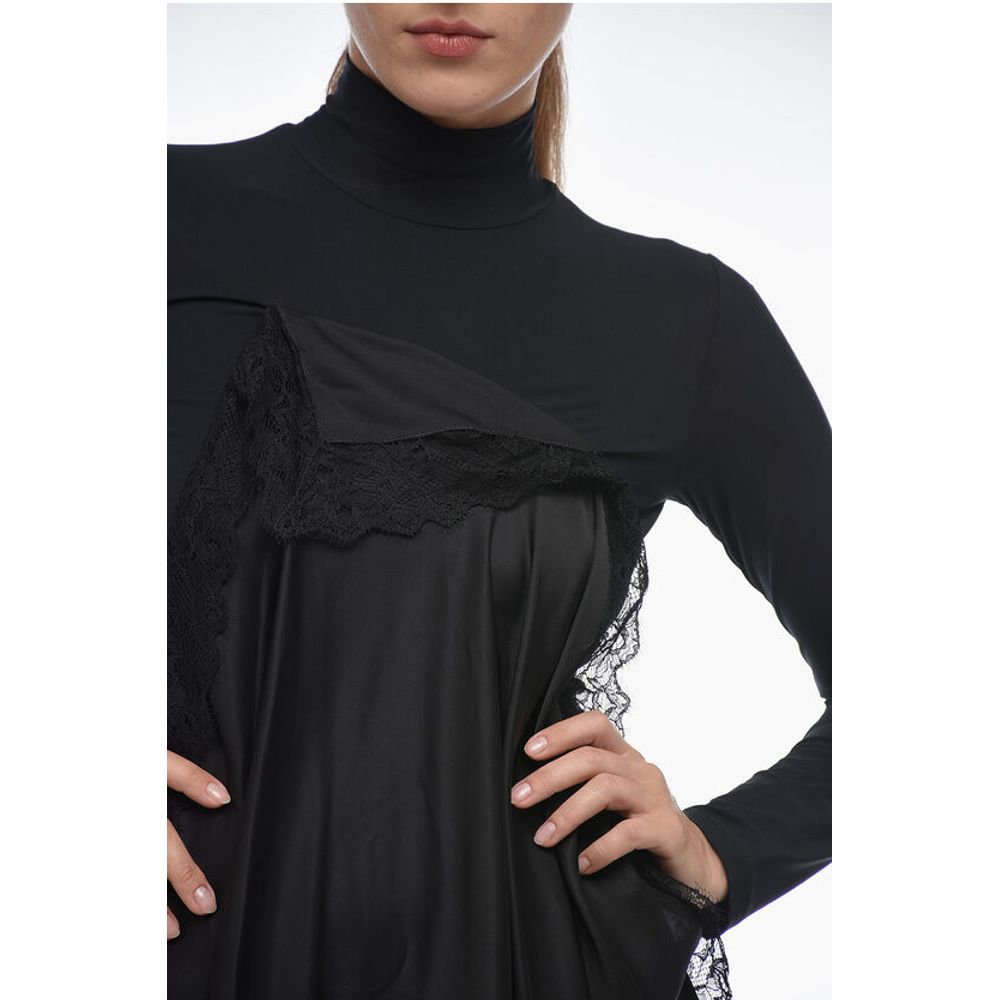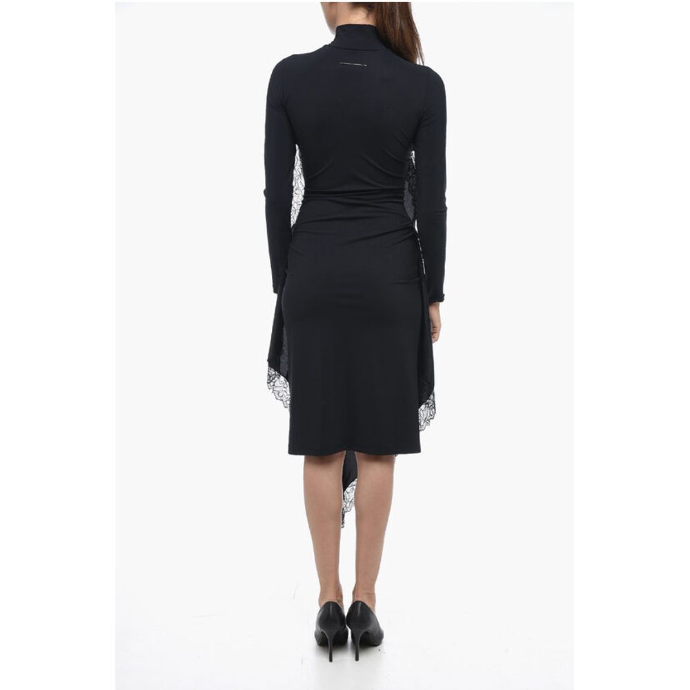 Maison Margiela MM6 Stretch Sheath Dress with Satin and Lace Drape