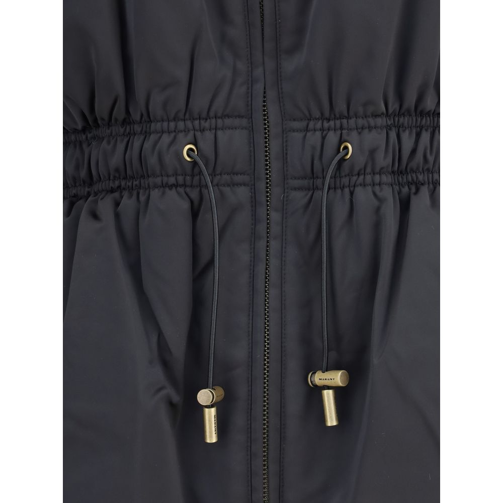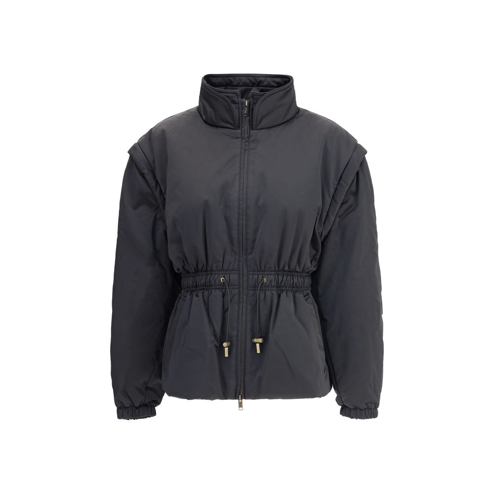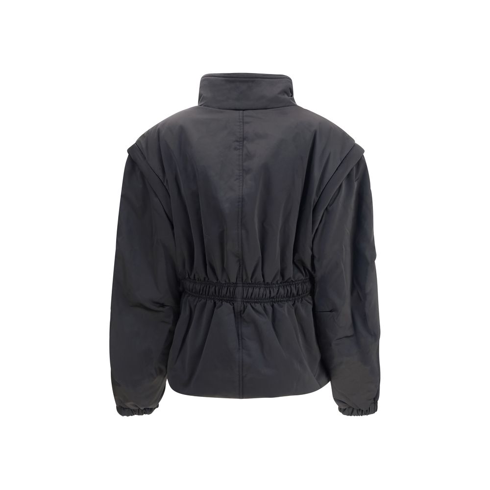 Marant Etoile’s Dastyni Coat, made of quilted satin, combines functionality and style with a contemporary twist. Featuring a double high collar, turned-up shoulders and long sleeves with elasticated cuffs, it has a front zipper closure, elasticated waist with drawstring and stoppers, and side pockets. Tone-on-tone lining and a narrow cut at the waist complete the design, offering a defined and feminine silhouette.