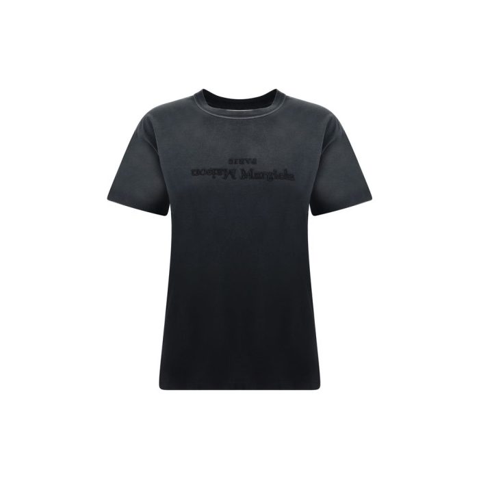 Cotton T-Shirt by Margiela, ribbed crew neck, iconic brand monogram embroidered on front, regular fit.