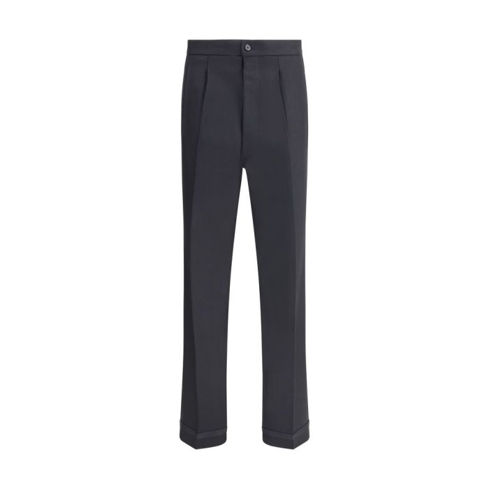 Maison Margiela’s Wool Pleated Pants combine sartorial tradition with the brand’s iconic details. Featuring a logo hook-and-button closure, they have an elegant silhouette with turn-ups at the bottom that define the structure. The two welt pockets, both side and back, offer functionality and formal cleanliness to the design. On the back, the iconic white embroidered topstitching discreetly marks the Margiela identity, adding a distinctive touch to a classic and versatile garment designed for those who appreciate essentiality with character.