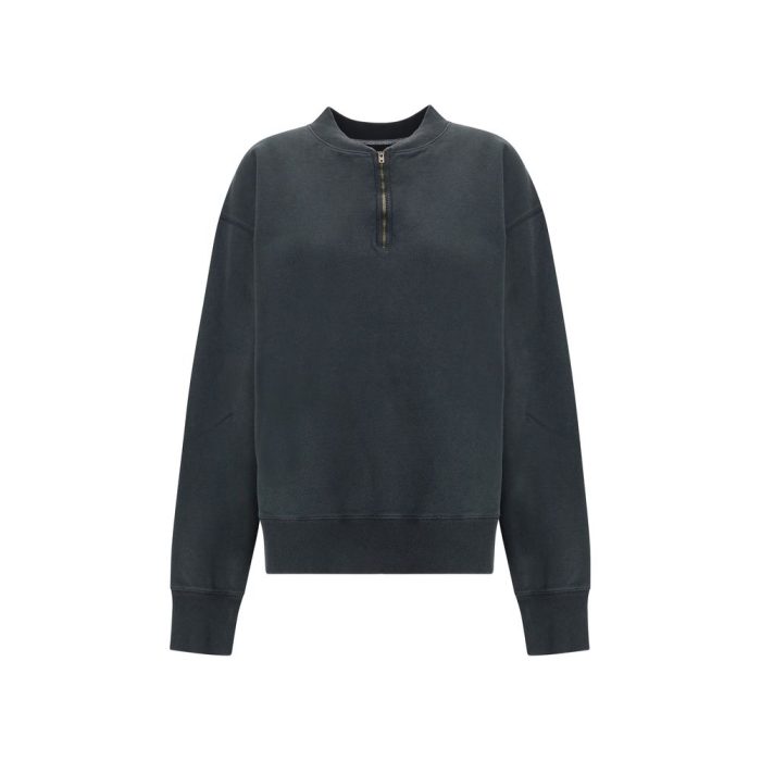 Margiela’s Zip Sweatshirt combines comfort and minimalist style. Featuring a ribbed collar and a half-bust zipper closure, it has dropped shoulders for a relaxed fit. Ribbed cuffs and hem complete the garment, adding structure and definition to the essential design.