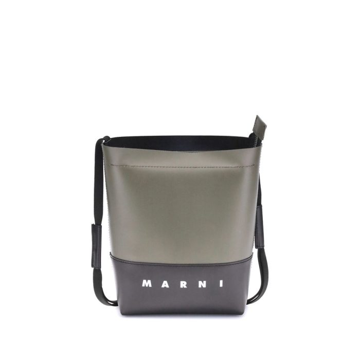 Marni’s colorblock Shoulder Bag combines modern design and functionality. Featuring an adjustable ribbon shoulder strap for personalized comfort, it has a practical and secure zipper closure. A Marni logo print stands out on the front, while palladium metal elements add a touch of contemporary elegance.