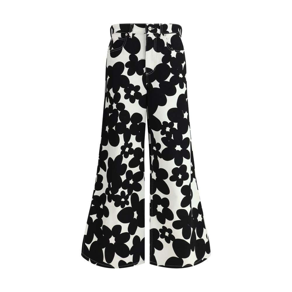 Marni’s Flared Pants are a distinctive garment with a strong visual impact, thanks to the black-and-white large-flower pattern that creates a bold and original contrast. The five-pocket design and front zipper-and-button closure offer a comfortable and functional fit, while waistband loops allow you to further customize the look. The flared shape, typical of the 1970s, lends a touch of retro elegance, making these pants ideal for those seeking a unique and contemporary style.