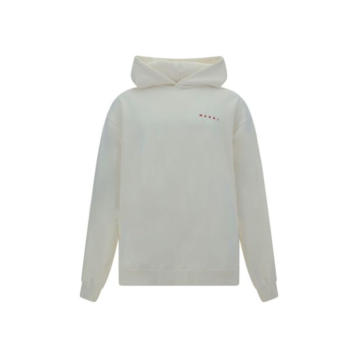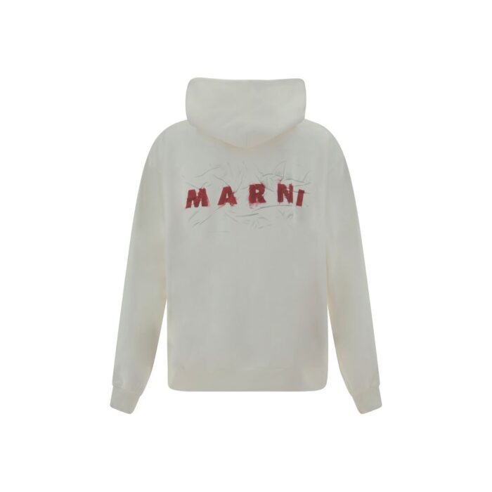 Cotton Hoodie by Marni, hood with adjustable drawstring, ribbed cuffs, ribbed hem, front kangaroo pocket, iconic brand monogram printed in contrast on front and back, regular fit.