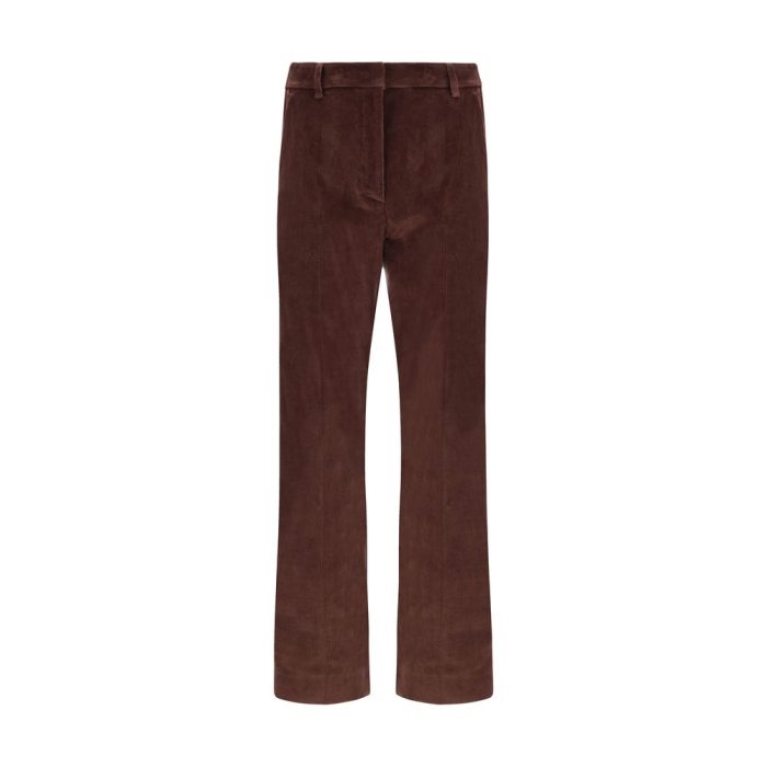 The Marruca Trousers by Weekend Max Mara are crafted from fine cotton corduroy, featuring a slim silhouette with a slightly flared cropped leg. Designed with a high waistband, zip and hook closure, and pressed creases for a polished look. Side slant pockets, double welt back pockets with button, and belt loops complete this refined, versatile piece.
